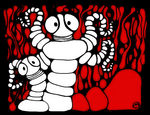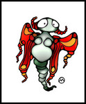 ik zit vaak zo maar een eind weg te 'droodlen',de leukste tekeningen scan ik in en bewerkt ze verder op de computer, eh voila, zo ontstaan de Spyro's van Planet M.